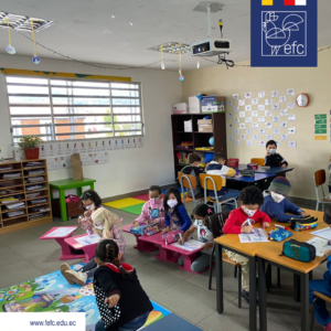 Desde el 31 de enero, la Escuela Francesa de Cuenca adoptó para sus niveles de CP, CE1 y CE2 el modelo de clases flexibles. Posterior a sesiones de capacitación con asesores educativos de la AEFE (Agencia para la Enseñanza Francesa en el Extranjero); la importante implicación de las y los docentes en la reflexión y reorganización de las clases y la participación de las y los estudiantes para definir sus anhelos en el aula, este regreso a clases, con el retorno a las actividades presenciales, se lo realizó con clase dispuestas para dicho objetivo y con un plan de estudios innovador.