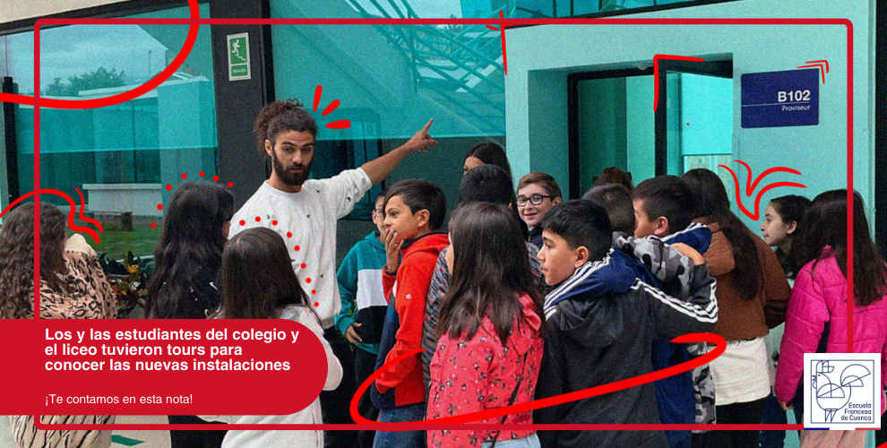 Los y las estudiantes de la sección del colegio y el liceo (6eme y Terminale) de la Escuela Francesa de Cuenca recibieron un tour por las nuevas instalaciones para conocer y entender su nuevo entorno. Este tour, guiado por profesores, les brindó la oportunidad de explorar los espacios recién diseñados y descubrir todas las comodidades que la escuela tiene para ofrecer. El nuevo local ubicado en la Av. Ricardo Durán y Mariano Villalobos será el espacio que próximamente toda la escuela ocupe.