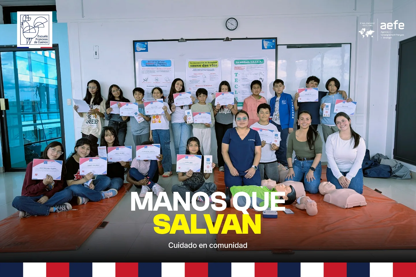 En la Escuela Francesa de Cuenca creemos que la educación integral no termina en el aula de clases. Por eso, desde Vida Escolar y el Departamento Médico, impulsamos el proyecto «Manos que Salvan»: una iniciativa práctica y transformadora dirigida a los estudiantes de secundaria, diseñada para fortalecer su capacidad de respuesta ante situaciones de emergencia.