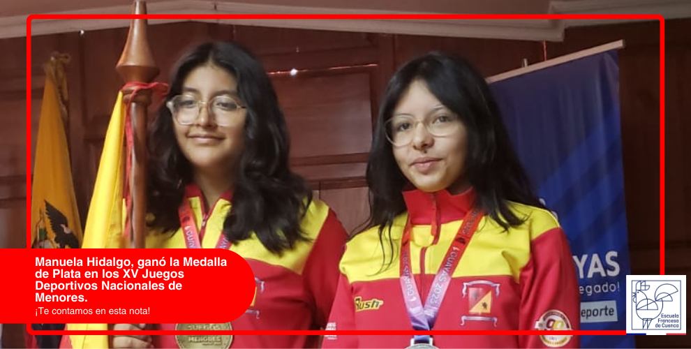 La comunidad educativa de la Escuela Francesa de Cuenca se enorgullece al felicitar a Manuela Hidalgo, estudiante de 3me, por su destacada participación en los XV Juegos Deportivos Nacionales de Menores, el evento deportivo juvenil más importante de Ecuador. Los juegos se llevaron a cabo en la ciudad de Guayaquil, del 25 al 29 de septiembre del presente año.