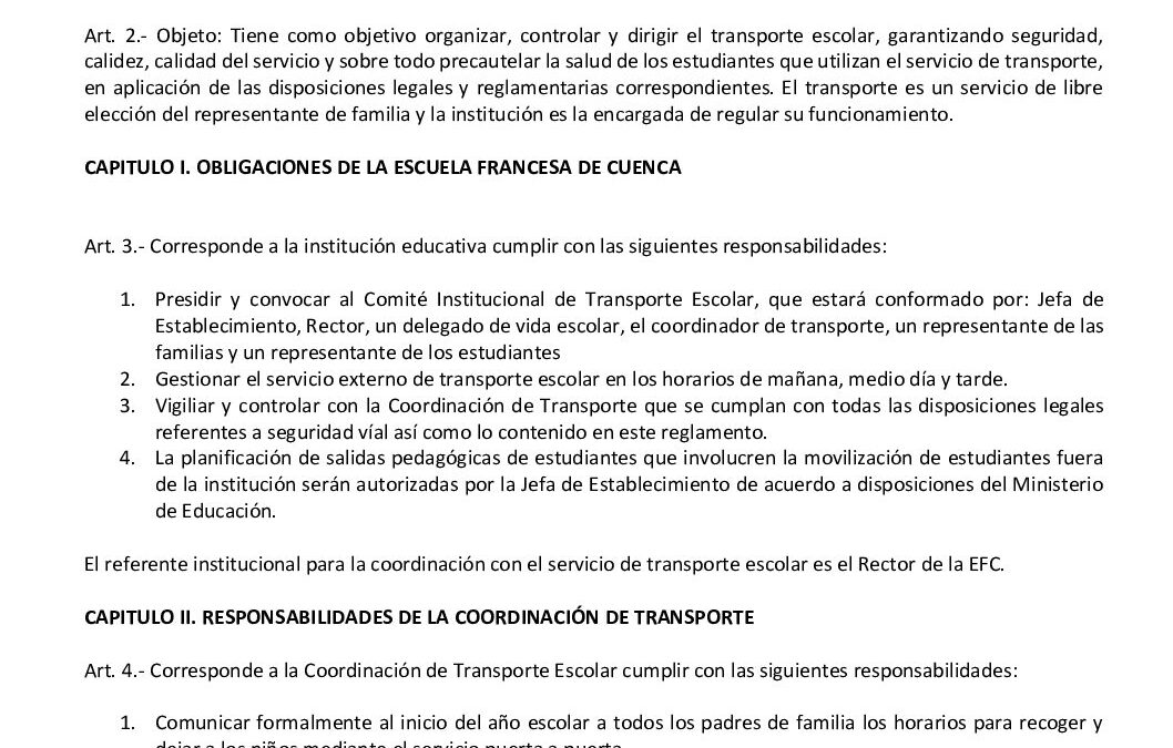 Reglamento Transporte Escolar 2025-2026