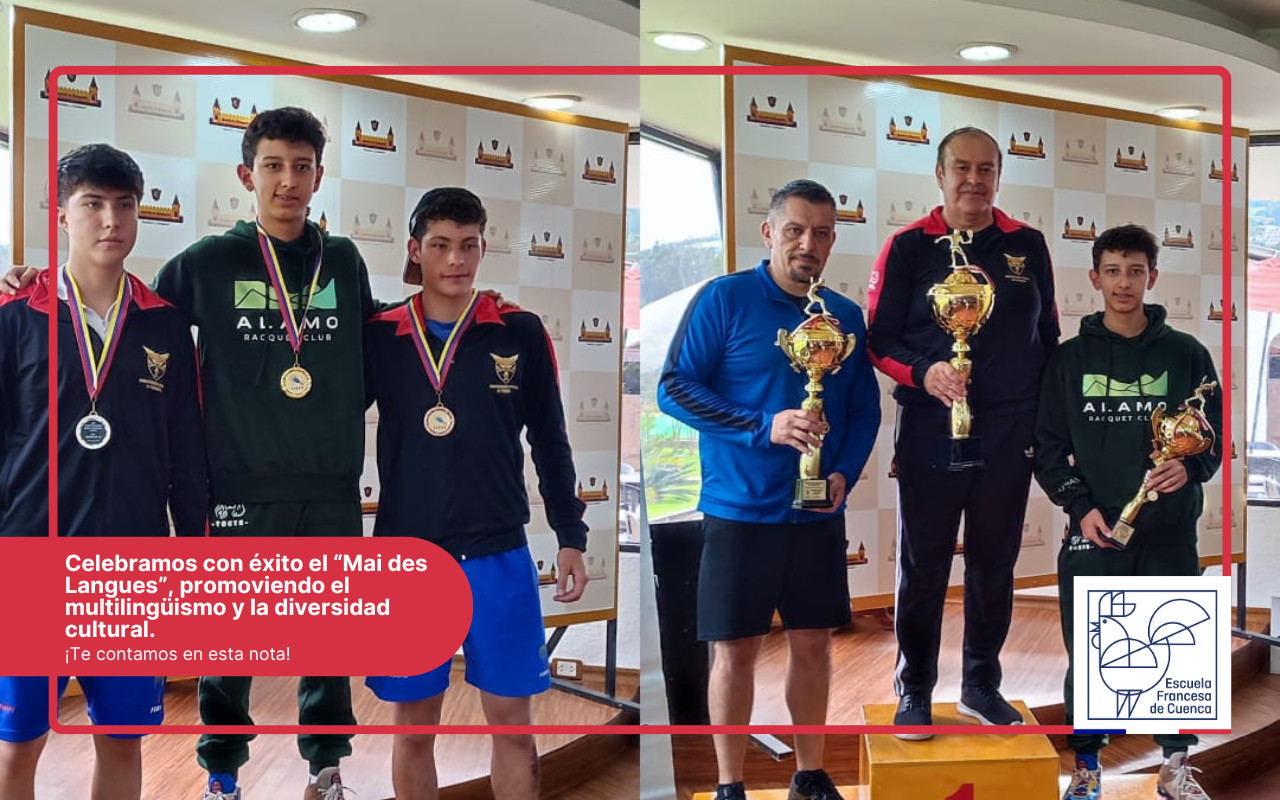 La comunidad educativa de la Escuela Francesa de Cuenca celebra con gran orgullo el reciente éxito de Tomás Quezada, un destacado estudiante de la sección del Liceo. Tomás se coronó Campeón en el II Selectivo Juvenil en la categoría de 16 años y obtuvo un meritorio Tercer lugar en el I Nacional Categoría B, en competencias de racquetball celebradas en la ciudad de Quito del 22 al 25 de mayo de 2024.